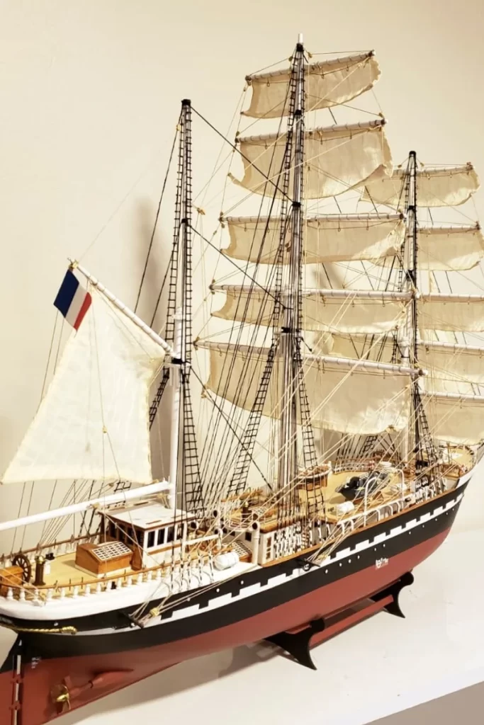 Cada detalle, cubierta, jarcia, mástiles y elementos técnicos, es trabajado con precisión artesanal para reproducir la elegancia y presencia del tres mástiles francés. El resultado es una pieza de exhibición de alto impacto visual, ideal para coleccionistas, espacios corporativos y amantes de la tradición marítima europea.